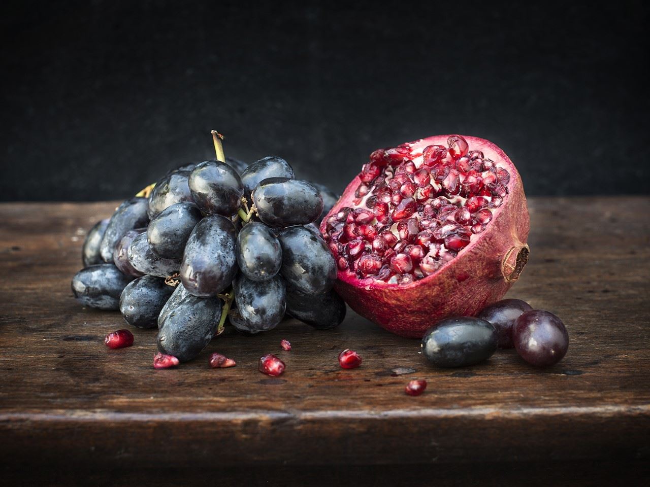 I’ve spent a lot of time looking at the oil paintings of the Dutch Masters to try and see what made them so successful. And if this is successful, it’s very much because it’s standing on the shoulders of some giants of previous centuries. I borrowed or was inspired by this kind of set up - two simple elements - grapes, a pomegranate. And I guess a third element in the dark wood breadboard.