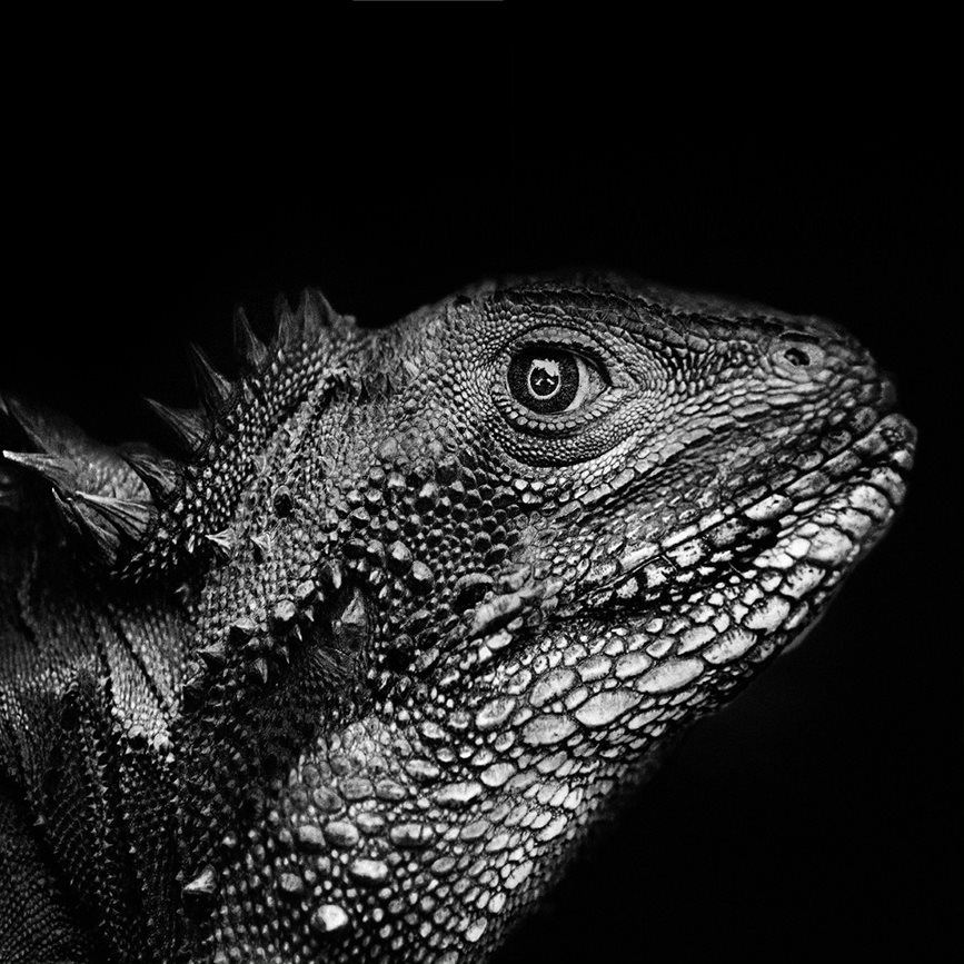 Animals make wonderful subjects for photography. Making their portraits always fills me with a sense of wonder. This particular one is of an Eastern Water Dragon, a very Australian creature, prehistoric, muscular, beautiful things to look at. You used to find them all over the east coast. This particular one was sitting up in Coffs Harbour around a swimming pool. I was amazed as I watched it because every now and then it would dive into the pool and do laps right around the pool under water. I found out subsequently that they can hold their breath underwater for 90 minutes, which is pretty exceptional. But luckily for me he came out to dry in the sun. And by lying down on my stomach and creeping up towards him with my camera I was able to get probably within about a metre and he would let me sit there and we would stare each other down.