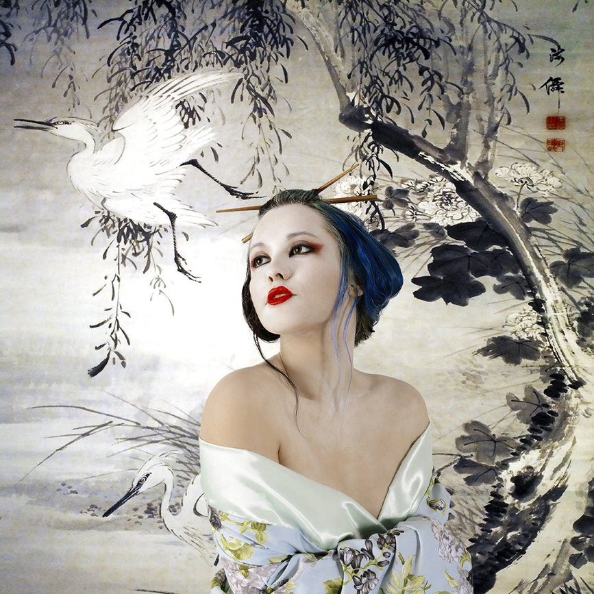 This is a portrait of a woman who is striving for independence in her life. She is made up as a geisha because geisha’s in Asian history have always symbolised beauty. But in particular an inner beauty and an ability to transform oneself at any time in your life - to take on a new persona, to take on a new mask and move forward.